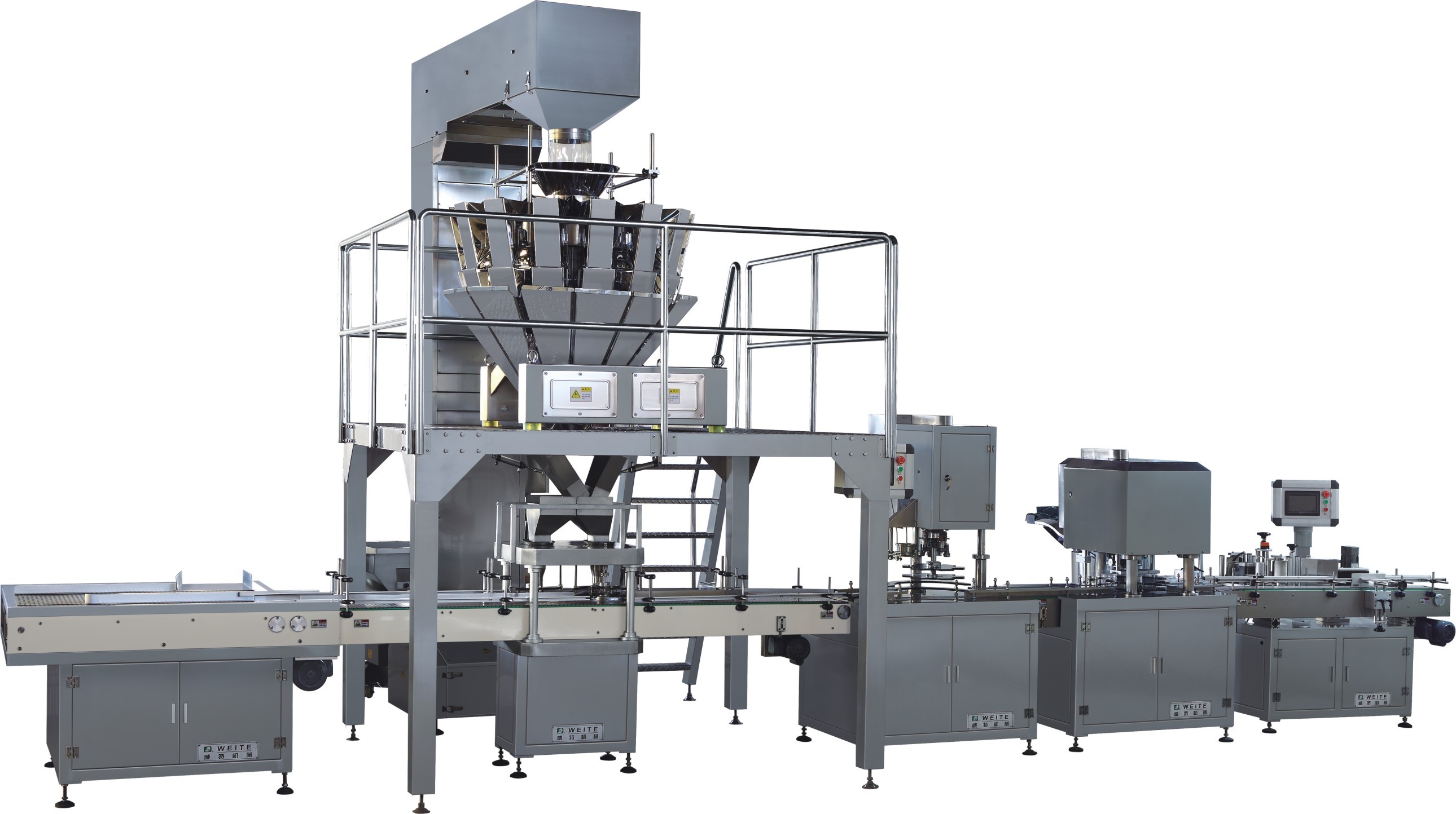 这套生产线适用于坚果、蜜饯、瓜子、果酱、炒货、等颗粒类物料的自动装罐封盖贴标。该生产线从理瓶、自动计量填充、封易拉盖输出成品均为全自动,大大节省人力,提高生产效率。根据用户需求,另可配打码机构等。